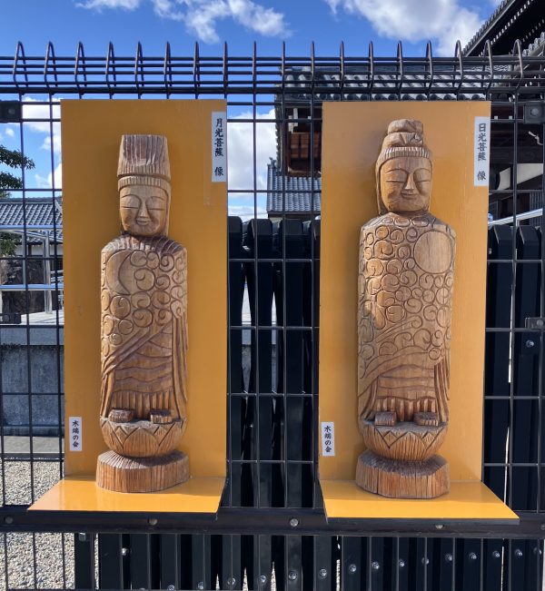 こちらの2尊のグルグルした模様が覚王山の鉈薬師(なたやくし)の摩虎羅ちゃんを思い出したので(描いたら記憶に残るの法則)家に帰ってから調べてみたところ、鉈薬師の月光菩薩様と日光菩薩様っぽいなと思いました。