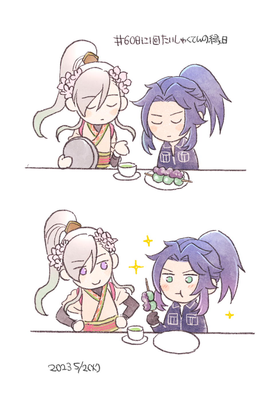 二次創作ってキャラのお誕生日にお誕生日絵を描いたりしがちですけど、仏は誕生日がないからそういうのできないな思ってやり始めた #60日に1回たいしゃくてんの縁日。なので縁日はめでたい感覚です。