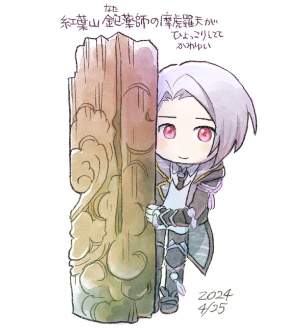 紅葉山 鉈薬師(名古屋市千種区田代町四観音道)の円空仏の摩虎羅天がなんか可愛かったので私の脳内に思い浮かんだ摩虎羅ちゃんを念写してみました。ネットで実仏を見返すともうちょっと家政婦のミタっぽかったかな…なんにしろ覗き込んでるような感じで可愛かったのです。