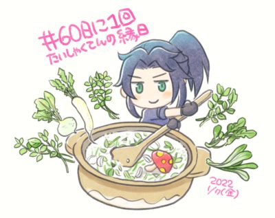 七草粥。一応調べてみましたがスズナは「カブ」、スズシロは「大根」は野菜、セリ、ナズナ、ゴギョウ、ハコベラ、ホトケノザ、は野草らしい。